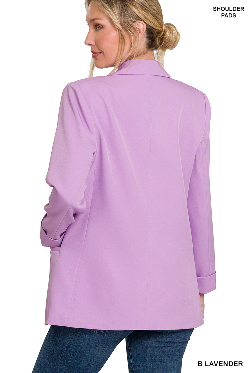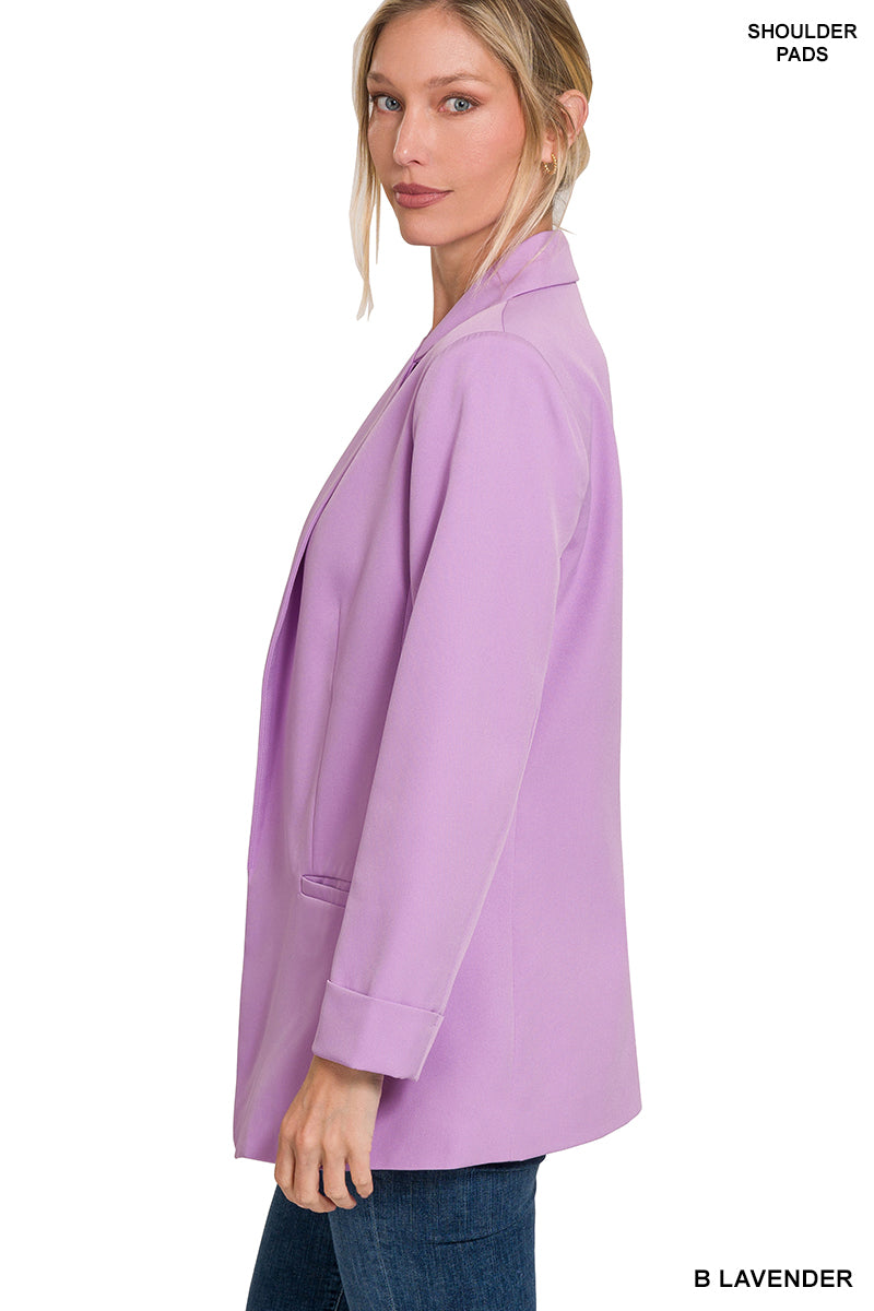 WOVEN LONG SLEEVE OPEN FRONT CLASSIC BLAZER WITH LINING