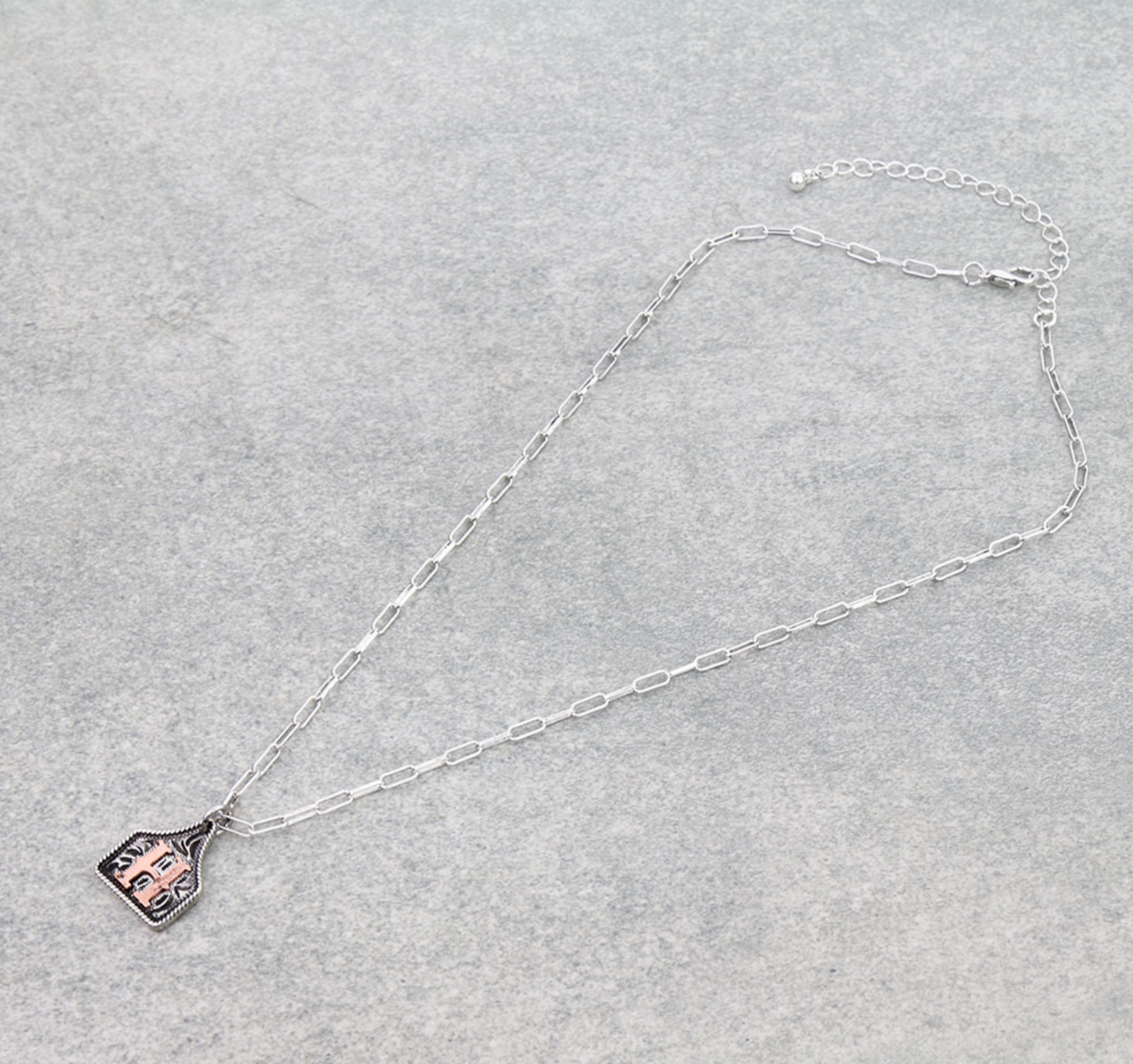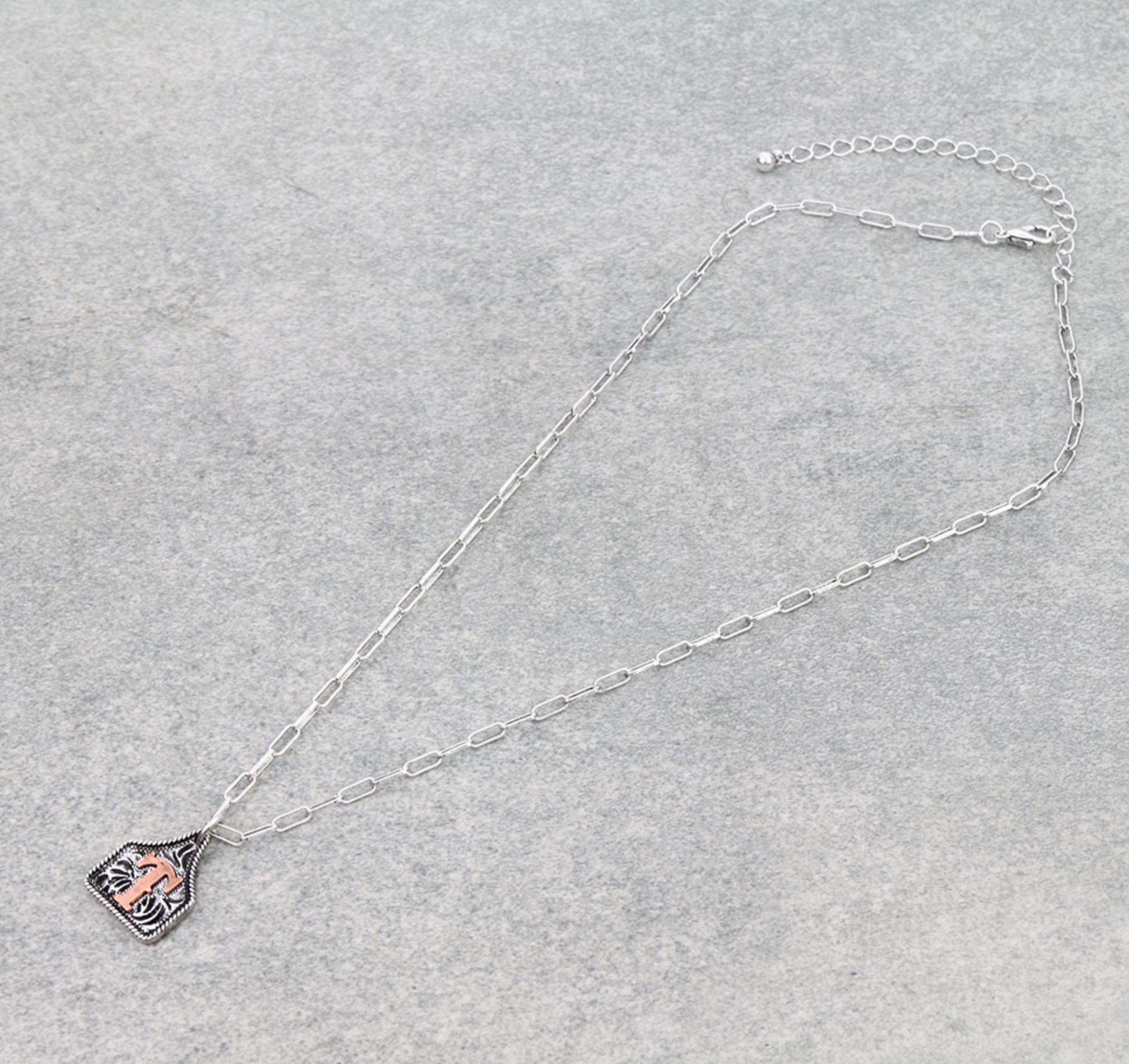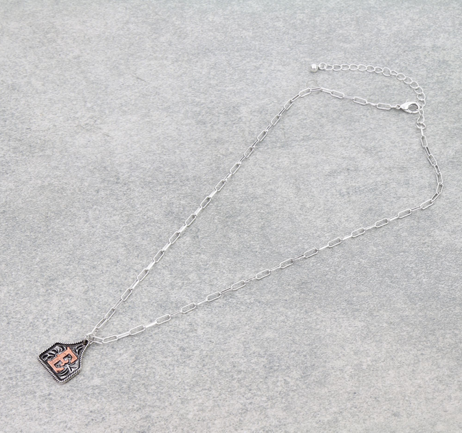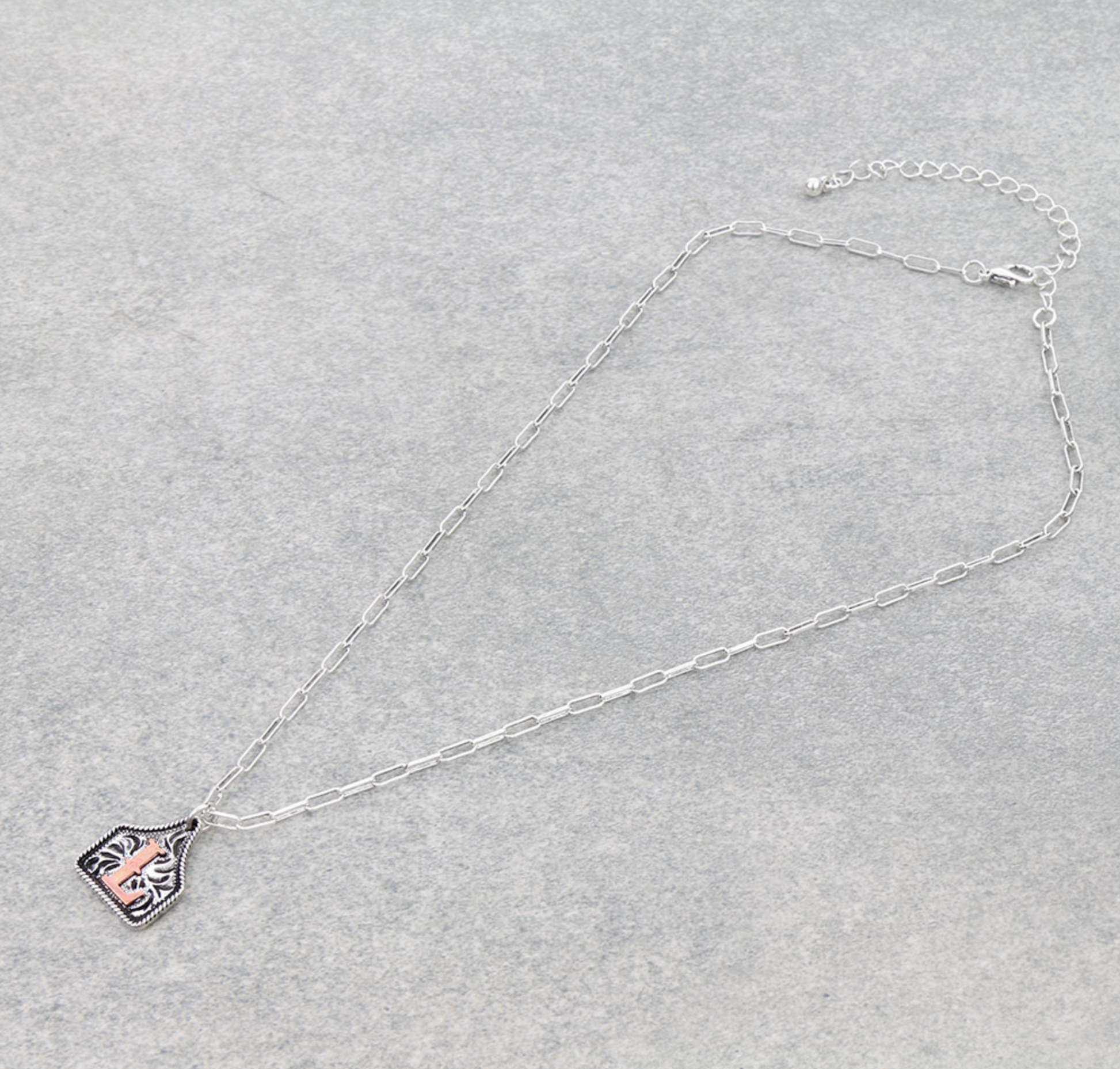Western Ear Tag Initial Necklace *Copper*