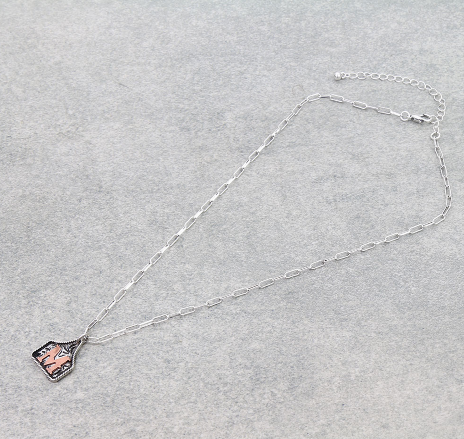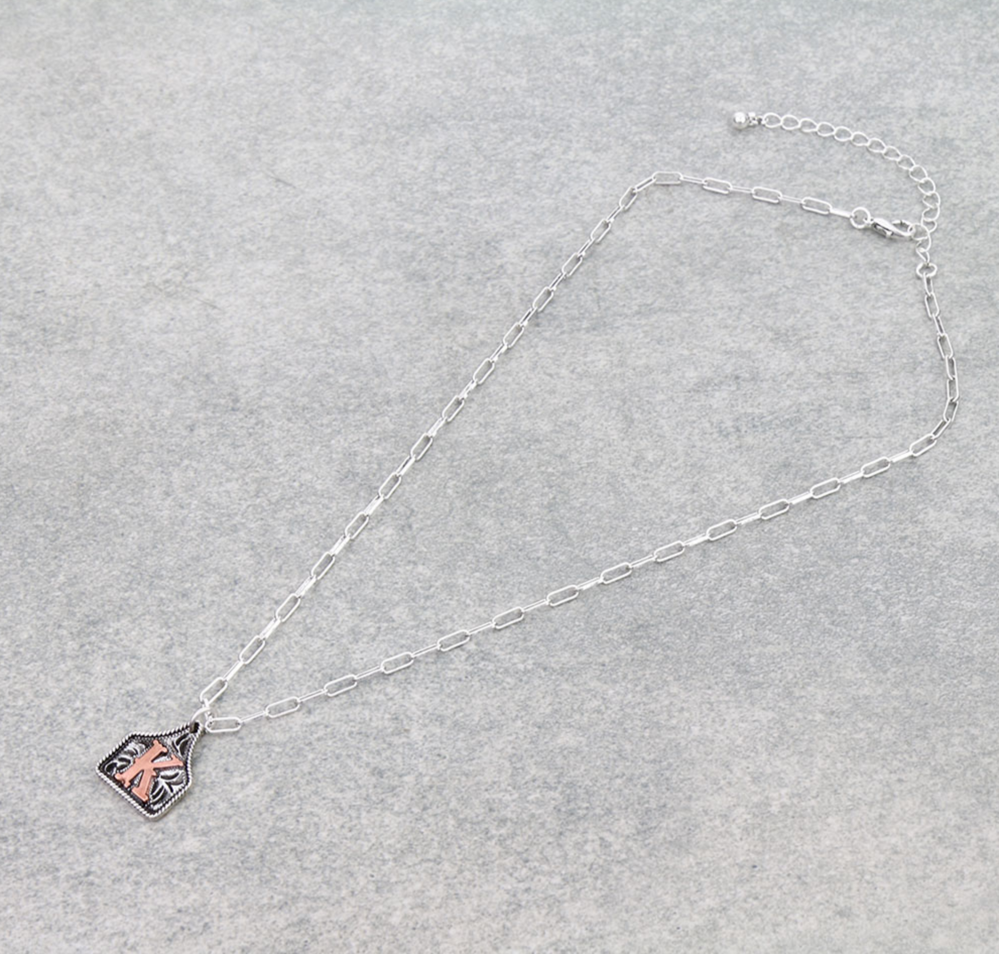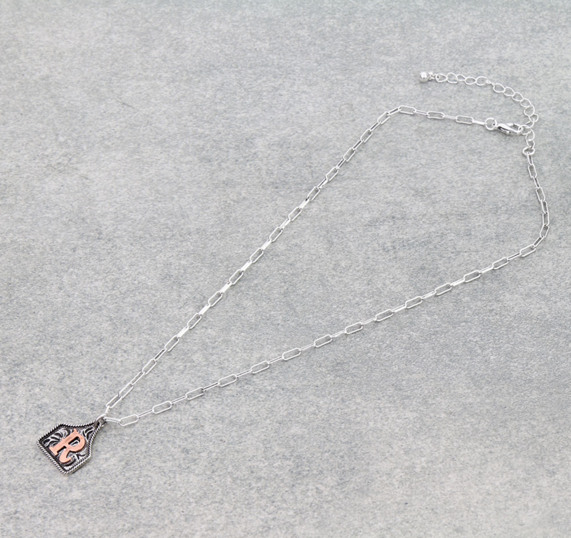 Western Ear Tag Initial Necklace *Copper*