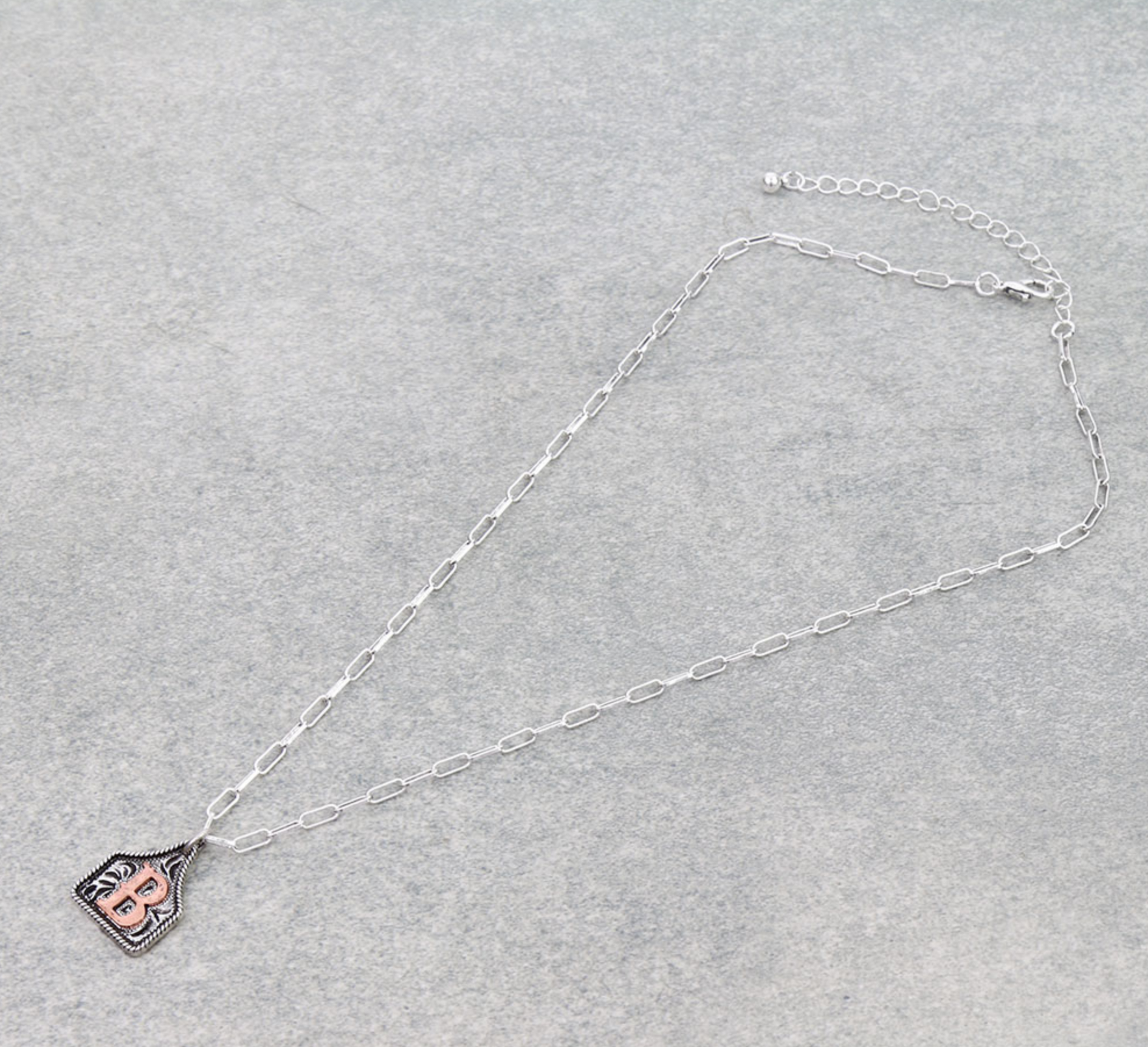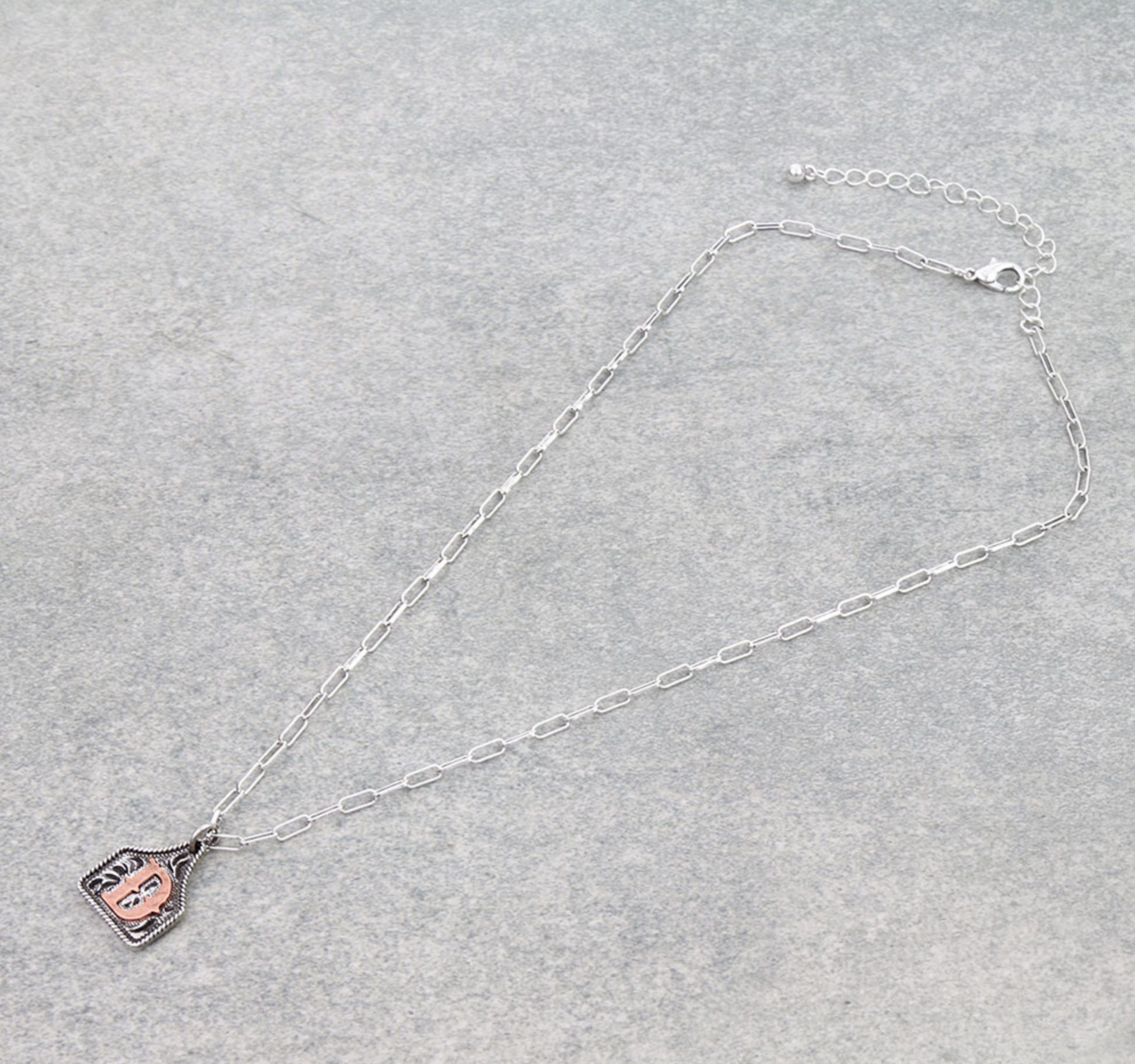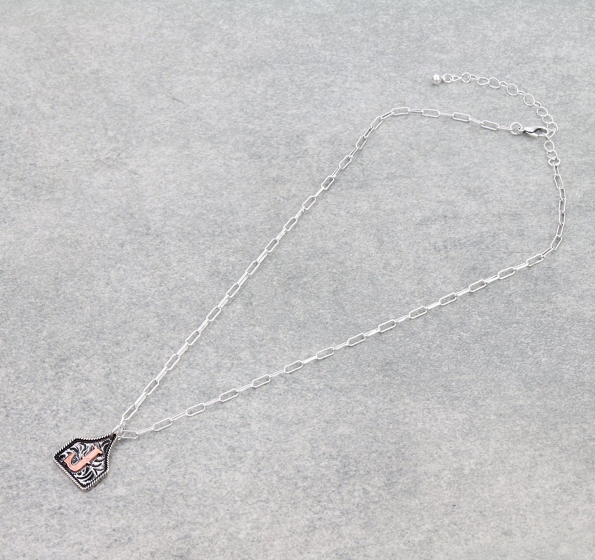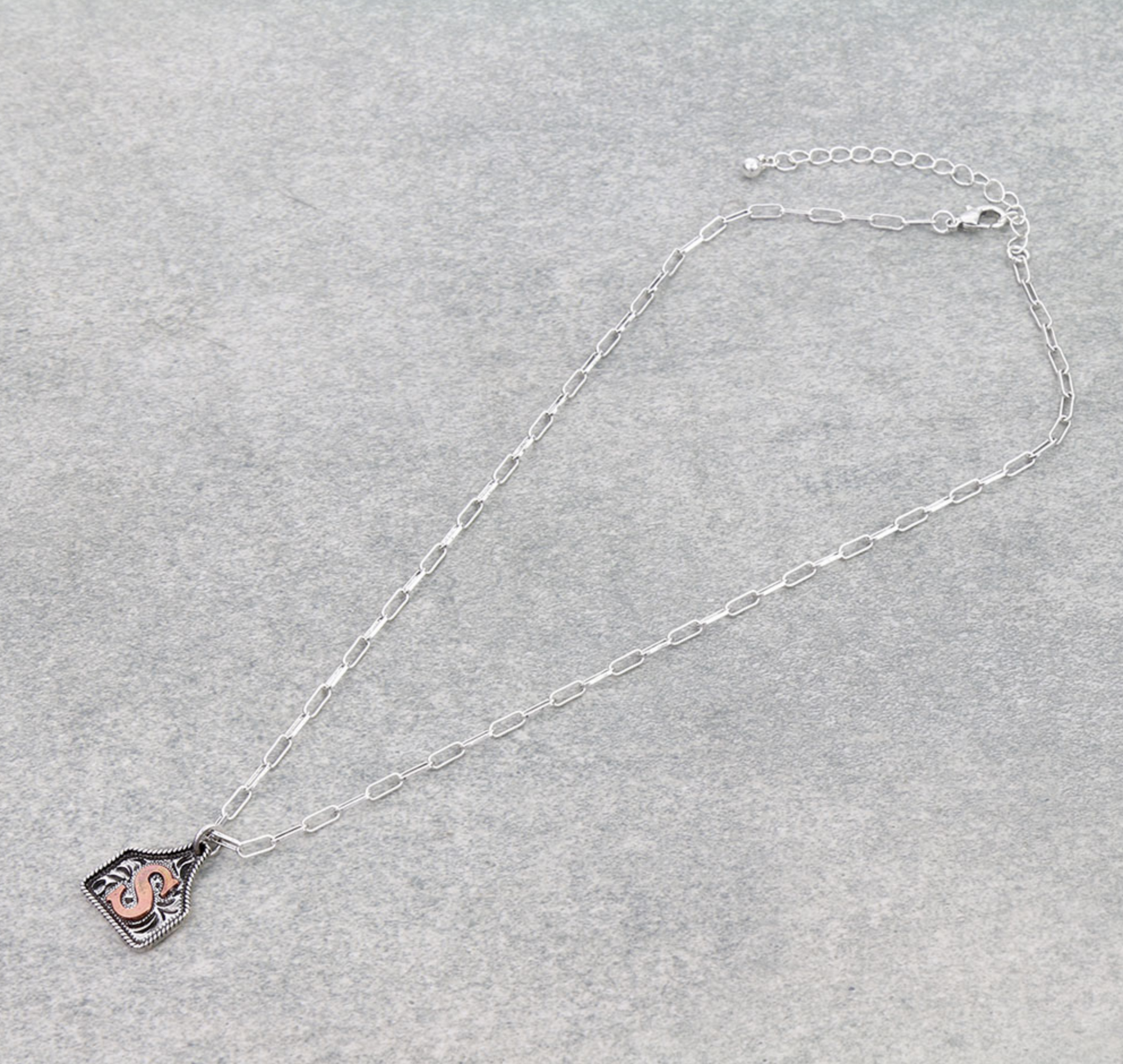 Western Ear Tag Initial Necklace *Copper*